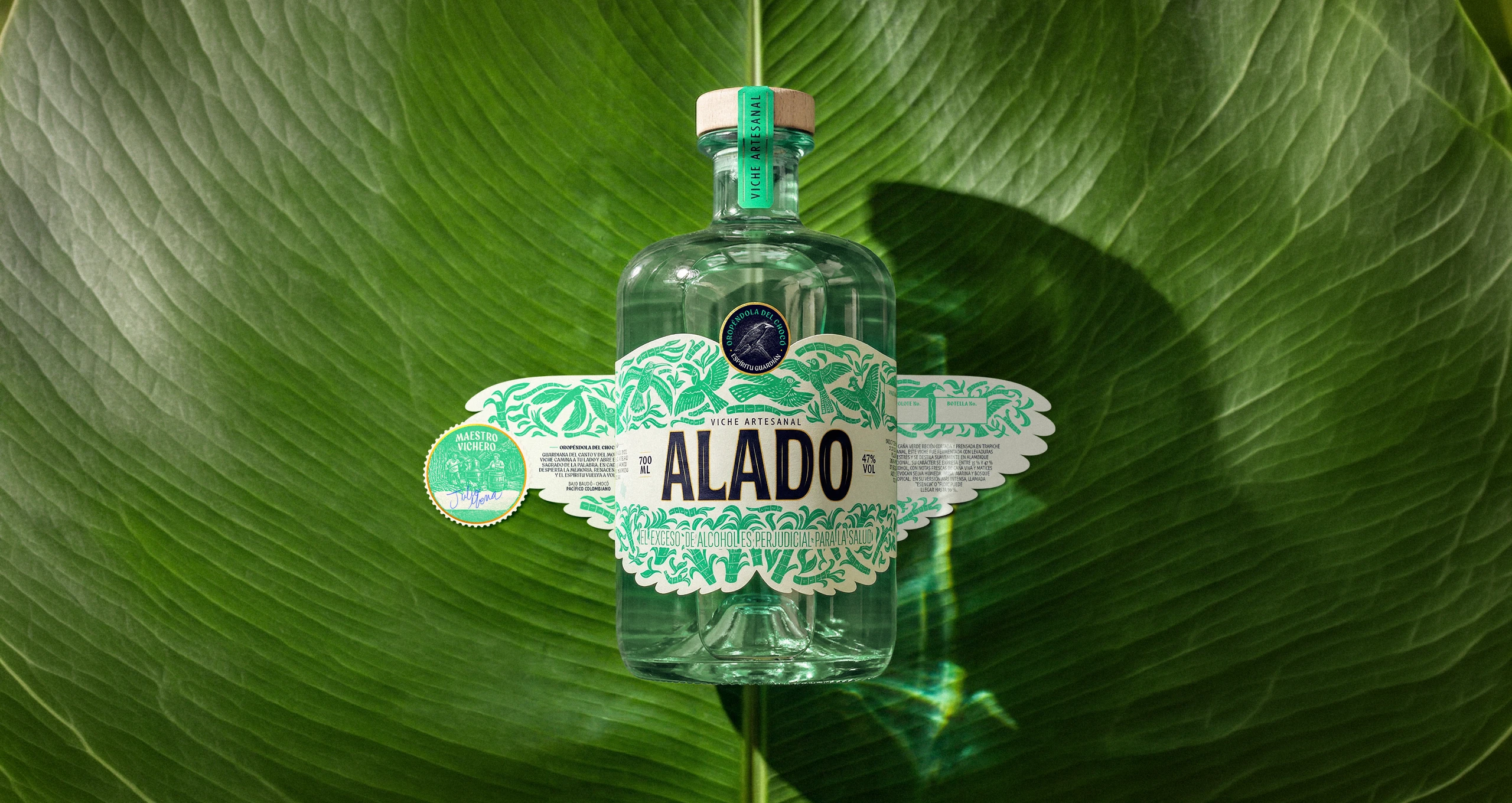 ALADO nace de esa herencia. Su nombre guarda un doble sentido: al lado, porque un buen viche se comparte al lado de quienes amas, . Y alado, porque las aves son los guardianes del Pacífico, portadoras de susurros como los abuelos portaban sabiduría.